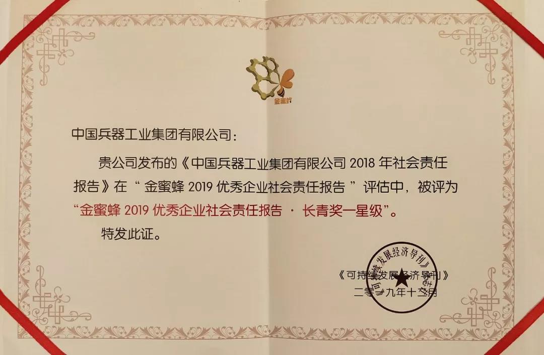 兵器工業(yè)集團社會責(zé)任報告再獲“金蜜蜂優(yōu)秀企業(yè)社會責(zé)任報告·長青獎” |