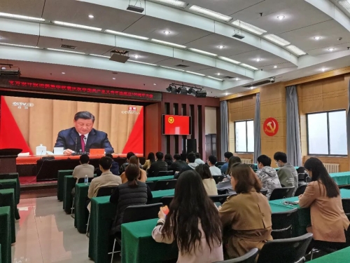 ▲西北機電工程研究所團委組織團員青年收看現(xiàn)場直播