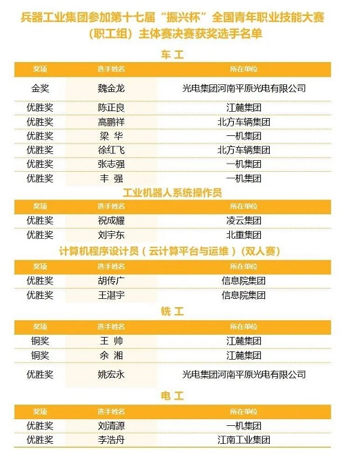 喜報(bào)丨兵器工業(yè)集團(tuán)青年職工在第十七屆“振興杯”全國青年職業(yè)技能大賽(職工組)決賽中勇奪金獎 |