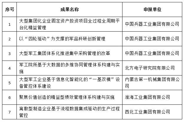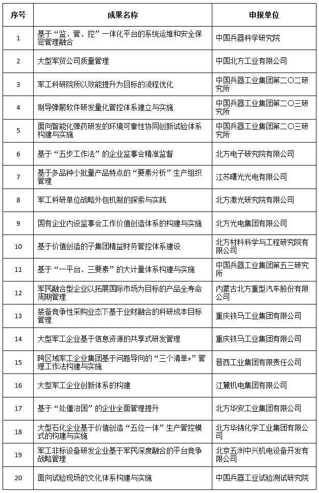 近日,中國兵器工業(yè)集團4項創(chuàng)新成果獲全國企業(yè)管理現(xiàn)代化創(chuàng)新成果獎、42項創(chuàng)新成果獲國防科技工業(yè)企業(yè)管理創(chuàng)新成果獎。 全國企業(yè)管理現(xiàn)代化創(chuàng)新成果 經(jīng)全國企業(yè)管理現(xiàn)代化創(chuàng)新成果審定委員會終審,第二十五屆全國企業(yè)管理現(xiàn)代化創(chuàng)新成果公布,中國兵器工業(yè)集團4項創(chuàng)新成果榮獲二等獎。 二等獎 國防科技工業(yè)企業(yè)管理創(chuàng)新成果 2018年度國防科技工業(yè)企業(yè)管理創(chuàng)新獲獎成果名單發(fā)布,中國兵器工業(yè)集團共獲獎42項,其中:一等獎7項,二等獎15項,三等獎20項。獲獎總量及一等獎數(shù)量均位于軍工集團首位。 一等獎 二等獎 三等獎 據(jù)悉,2018年度的國防科技工業(yè)企業(yè)管理創(chuàng)新評審工作,經(jīng)專家初審、函審、一等獎候選成果答辯、專家會議評審、評審委員會審核并公示后,評選出一批在履行強軍首責(zé)、全面貫徹創(chuàng)新驅(qū)動發(fā)展戰(zhàn)略和全面深化改革、高質(zhì)量發(fā)展等方面的優(yōu)秀成果。本年度共確定獲獎成果307項,其中一等獎44項,二等獎126項,三等獎137項。 |