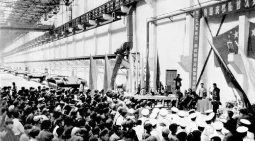1959年是中華人民共和國建國十周年,工廠接受了生產32輛坦克交部隊編隊參加檢閱的任務。強烈的榮譽感使全廠上下歡欣鼓舞、斗志旺盛?!皼Q心書”、“保證書”像紛揚的雪花貼滿墻壁?!疤齑蟮睦щy也要戰(zhàn)勝,堅決為國爭光,為廠爭譽”的豪情在人們心中激蕩。