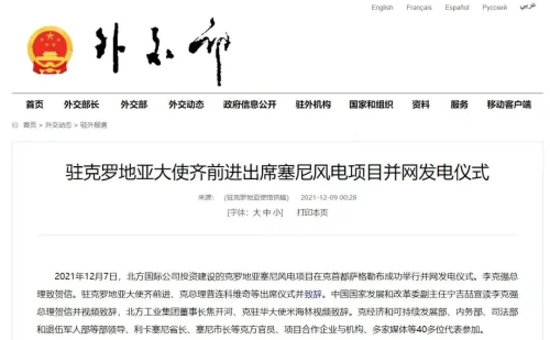2021年12月7日,中國兵器工業(yè)集團(tuán)有限公司北方公司所屬北方國際投資、建設(shè)和運(yùn)營的塞尼156MW風(fēng)電項(xiàng)目在克羅地亞首都薩格勒布隆重舉行并網(wǎng)發(fā)電儀式。李克強(qiáng)總理致賀信??肆_地亞總理安德烈·普連科維奇,中國駐克羅地亞大使齊前進(jìn)出席儀式并致辭。中國國家發(fā)展和改革委員會(huì)副主任寧吉喆宣讀李克強(qiáng)總理賀信并視頻致辭,中國兵器工業(yè)集團(tuán)有限公司董事長焦開河、克駐華大使米海林視頻致辭。 中華人民共和國外交部報(bào)道 普連科維奇總理在致辭中表示,感謝李克強(qiáng)總理發(fā)來賀信,他與中國領(lǐng)導(dǎo)人一直非常重視塞尼風(fēng)電項(xiàng)目投資與建設(shè)。祝賀項(xiàng)目克服疫情與地震等影響,成功并網(wǎng)發(fā)電。增加清潔可再生能源、綠色電力對(duì)克乃至歐洲都很重要,克政府的重要戰(zhàn)略和目標(biāo)之一就是低碳發(fā)展和增加清潔能源供應(yīng)。塞尼風(fēng)電項(xiàng)目占克總發(fā)電量將達(dá)3.5%,對(duì)克實(shí)現(xiàn)2022年可再生能源比例30%目標(biāo)具有很大幫助。此次投資使北方國際成為在克最大的清潔能源投資企業(yè)。非常歡迎更多中國企業(yè)擴(kuò)大對(duì)克投資。 寧吉喆宣讀李克強(qiáng)總理賀信并視頻致辭時(shí)表示,2017年11月第六次中國—中東歐國家領(lǐng)導(dǎo)人會(huì)晤期間,在李克強(qiáng)總理和普連科維奇總理等中東歐16國領(lǐng)導(dǎo)人的共同見證下,塞尼項(xiàng)目簽署了協(xié)議。項(xiàng)目既是中國堅(jiān)定踐行綠色發(fā)展理念的具體體現(xiàn),也是中國深化與克羅地亞、與中東歐國家務(wù)實(shí)合作的生動(dòng)實(shí)踐。希望中克兩國政府部門,企業(yè)等有關(guān)各方共同努力、相互配合,運(yùn)營好塞尼項(xiàng)目,打造出中歐綠色合作的樣板,帶動(dòng)兩國務(wù)實(shí)合作持續(xù)深入發(fā)展,造福兩國人民。 焦開河在致辭時(shí)表示,在塞尼項(xiàng)目投入運(yùn)營之際,李克強(qiáng)總理專門致信祝賀。作為塞尼項(xiàng)目的投資方、建設(shè)方、運(yùn)營方,我們備受鼓舞,深感自豪!未來,中國兵器工業(yè)集團(tuán)有限公司將繼續(xù)深入貫徹落實(shí)習(xí)近平總書記重要指示批示精神和李克強(qiáng)總理賀信重要要求,以高標(biāo)準(zhǔn)、可持續(xù)、惠民生為目標(biāo),與克方合作伙伴坦誠溝通、攜手并進(jìn),進(jìn)一步推動(dòng)綠色能源建設(shè),努力打造更多的“一帶一路”標(biāo)志性、引領(lǐng)性、示范性項(xiàng)目,為鞏固中克戰(zhàn)略合作伙伴關(guān)系、推進(jìn)中克從經(jīng)貿(mào)領(lǐng)域到全方位合作貢獻(xiàn)積極力量。 齊前進(jìn)祝賀塞尼風(fēng)電項(xiàng)目順利完工和成功并網(wǎng)發(fā)電。他表示,塞尼風(fēng)電站項(xiàng)目并網(wǎng)發(fā)電是中克兩國領(lǐng)導(dǎo)人親自關(guān)注和推動(dòng)的成果。作為迄今最大的中國在克投資合作項(xiàng)目,塞尼風(fēng)電項(xiàng)目是中克和中歐綠色合作的典范,對(duì)克提高清潔能源生產(chǎn)消費(fèi)發(fā)揮著重要作用。項(xiàng)目建設(shè)過程中為當(dāng)?shù)嘏囵B(yǎng)了許多工程、技術(shù)和管理人才,帶動(dòng)了當(dāng)?shù)仄髽I(yè)發(fā)展,增加了就業(yè)和稅收,促進(jìn)了當(dāng)?shù)亟?jīng)濟(jì)社會(huì)發(fā)展,充分體現(xiàn)了中國對(duì)外經(jīng)貿(mào)合作與“一帶一路”倡議秉持的互利共贏、共同發(fā)展的理念,也是中國積極倡導(dǎo)的綠色低碳發(fā)展合作的典范。 塞尼項(xiàng)目位于克羅地亞中部亞得利亞海沿岸,建設(shè)總投資1.79億歐元,總裝機(jī)容量156MW,采用39臺(tái)4MW風(fēng)力發(fā)電機(jī)組設(shè)備,風(fēng)場面積達(dá)42.8平方公里。項(xiàng)目正式運(yùn)營后,預(yù)計(jì)每年平均發(fā)電超3000小時(shí),貢獻(xiàn)約5.3億度綠色電力,可減少二氧化碳排放約46萬噸,將為克羅地亞促進(jìn)能源轉(zhuǎn)型、發(fā)展綠色經(jīng)濟(jì)提供強(qiáng)勁助力,貢獻(xiàn)了“中國智慧”“中國方案”。 來源/中華人民共和國外交部、綜合有關(guān)報(bào)道 |